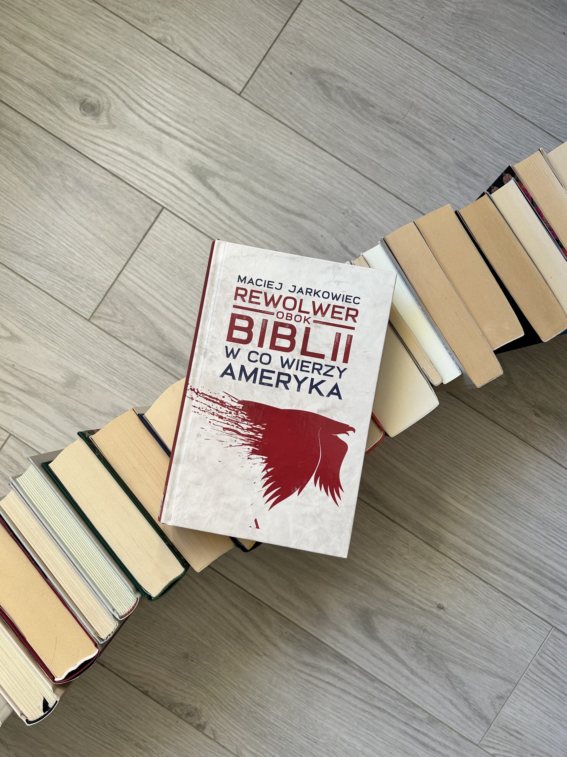 Kiedy szłam wypożyczyć Shitshow. Ameryka się sypie, a oglądalność szybuje z biblioteki miejskiej, pani bibliotekarka dość spontanicznie podsunęła mi Rewolwer obok Biblii. W co wierzy Ameryka? Macieja Jarkowca. Powiedziała, że tematyka podobna, więc może mi… Pozytywne zaskoczenie